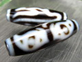 天珠とは紀元前からチベットに伝わるお守りで、瑪瑙(めのう)という石に特殊な腐食加工を施して紋様を描いたものです。 チベットには、天珠はこの世の石ではなく、天から降ってきた生命のある霊虫だという伝説があります。 霊力を持って災厄を逃れ、生命を守り、富財あらゆる幸運を招くと信じられており、代々家宝として受け継がれ大切にされてきました。 紋様が持つ不思議な力と磁場で、魔を断ち、罪障や厄難を除き、生命、健康を守り、財運を呼ぶと云われています 。 当方の天珠は色を塗ってあるだけのものではなく、至純天珠と呼ばれ、中まで紋様が染み込んでいます。 年々、上質な天珠は流通量が減少しています。 お買い逃しなく!! 【佛龍眼梵字天珠の意味合い】 ・佛龍眼梵字天珠 佛龍眼梵字天珠の目の紋様はこのブッダアイを表しています。 仏の聖なる目が持ち主を守り、あらゆる魔を跳ねのけ、福を運んできてくれると云われています。 ブッダアイはブッダの【智慧の眼】ともいわれ、一眼天珠も同じ智慧の眼であり、修行の過程での五眼を開眼させる意味合いがあるとされています。 鼻の部分にある、金銭釣天珠のような釣り針のモチーフは、ネパールの数字である【 1 】を表しており、生命の調和、ブッダの教えの統一や、悟りに到達する唯一の方法を象徴しているそうです。 ・千手観音菩薩 子年 キリーク 千手観音菩薩を表す梵字「キリーク」。 千手観音は、沢山の人々を救うために千の眼と千の手を持った観音菩薩の化身と云われ、子年の守護仏とされています。 干支の動物の子「ねずみ」:すぐに子ねずみが増え成長することから、子孫繁栄の意味があります。 【天珠とは】 天珠はチベットに古くから伝わるお守りで、瑪瑙(めのう)に特殊な加工を施して紋様を描いたものです。 模様ごとに意味合いがあるとされ、アクセサリーやお守り、コレクションとして人気があります。 近年は上質な天珠の流通量が減少しており、至純天珠は特に人気の高いアイテムです。 【こんな方におすすめ】 ・佛龍眼梵字天珠をお探しの方 ・お守りとして天珠を身に着けたい方 ・ブレスレット制作やパーツ用に選びたい方 ・コレクション用に天珠を集めている方 |