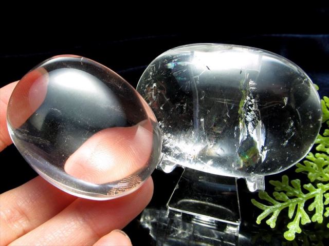 天然水晶のポリッシュタンブル 握り石が入荷しました! まるで石鹸のような形をした、つやつやに磨かれたホットストーン! お守りやインテリアの飾りとしてはもちろんのこと、マッサージにもお使いいただけます! 水晶は太古の昔から、広く世界中の人々に装飾品や通貨として親しまれてきました。 日常生活にはもちろん、祈祷や儀式など神聖な場所でも用いられ、あるいは病気治療の際にも用いられたと伝えられています。 パワーストーンは『水晶に始まって水晶に終わる』というぐらい、水晶抜きには語れません。 初級編的な石であると同時に、優れた霊能者の方や、パワーストーンの知識が豊富な方が最後に手にする石は水晶だといわれています! 水晶の中に入る虹は『希望の光』と呼ばれ、目標達成や陥った困難を乗越える兆しを与えると云われています。 強いヒーリング力を持ち、希望で未来を照らす石と云われがあるため、お守りとしても最適です!! なかなか入荷しない希少形状ですので、お買い逃しなく!! |