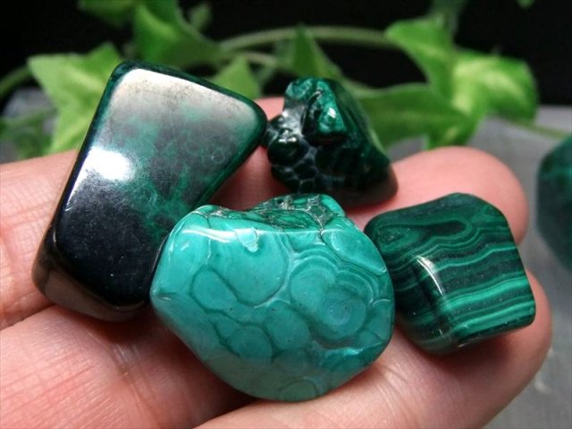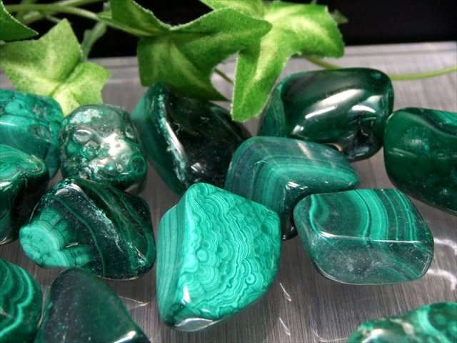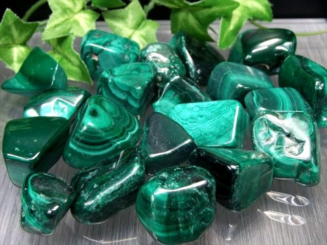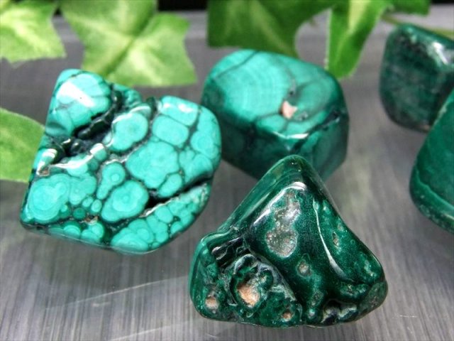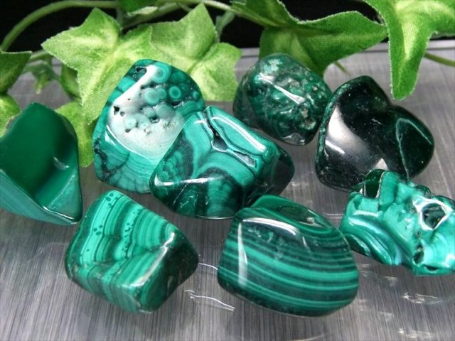 セット売りタイプ マラカイト(タンブル)が入荷いたしました! こちらはシンプルながら神秘的な雰囲気のランダムに磨かれたタンブルです 握り石として、置物として、お守りとしても使用いただけます! ※背景が白い画像にあるマラカイトが、実際にお届けされる100gの量となります。 マラカイトは和名を孔雀石といい、その美しいグリーンと模様が羽を広げた孔雀の様に見える事から、その名前がつけられました。 パワーストーンとしてのマラカイトは、心身の癒しに非常に優れた石と云われています。 心と身体、両面のエネルギー的な毒素や淀みを綺麗にしてくれます。 |