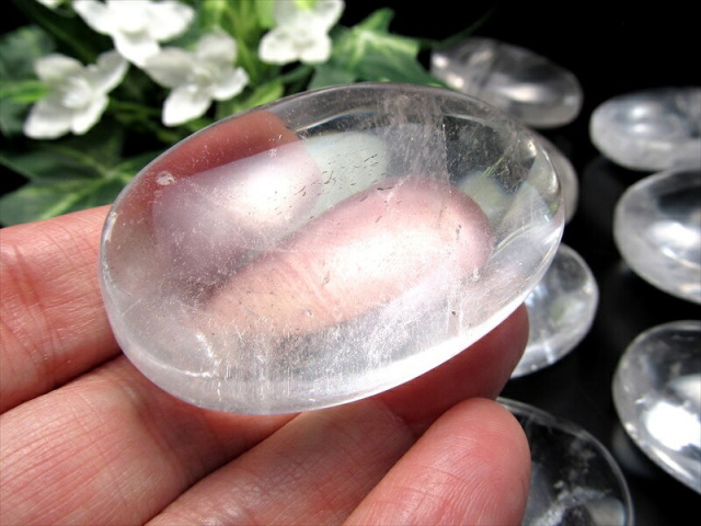 天然水晶のポリッシュタンブル 握り石が入荷しました! まるで石鹸のような形をした、つやつやに磨かれたソープストーン! お守りやインテリアの飾りとしてはもちろんのこと、マッサージにもお使いいただけます! 水晶は太古の昔から、広く世界中の人々に装飾品や通貨として親しまれてきました。 日常生活にはもちろん、祈祷や儀式など神聖な場所でも用いられ、あるいは病気治療の際にも用いられたと伝えられています。 パワーストーンは『水晶に始まって水晶に終わる』というぐらい、水晶抜きには語れません。 初級編的な石であると同時に、優れた霊能者の方や、パワーストーンの知識が豊富な方が最後に手にする石は水晶だといわれています! 水晶の中に入る虹は『希望の光』と呼ばれ、目標達成や陥った困難を乗越える兆しを与えると云われています。 強いヒーリング力を持ち、希望で未来を照らす石と云われがあるため、お守りとしても最適です!! なかなか入荷しない希少形状ですので、お買い逃しなく!! |