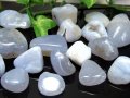ブルーカルセドニー 不定形タンブル 澄んだ海のようなブルーが美しい、ブルーカルセドニーのタンブルが入荷しました! 色の濃淡や形状が様々あるタンブルを詰め合わせです! 独自の淡い青と白の縞模様が美しい、ブルーレースアゲートも混ざっております! 他にも福運をもたらす笑顔の石と呼ばれる笑口メノウや、ナチュラル感のある母岩付きのものもあり、1つ1つの石に宿る個性に心が癒されます。 カルセドニーは人と人とを繋ぐ力を象徴する石と云われます。 また持つ人の気持ちを安らげ、周りに優しく接する心をサポートしてくれるとも云われます。 優しい印象の石ですので他の天然石との組み合わせもオススメです! 色みと相まって、持つ者の疲れやストレスを心身共に癒してくれます 激安価格ので入荷ですので、お買い逃しなく!! 【意味合い云われ・伝承等】 気持ちを安らげる 落ち着きを与える 人との結びつき |
