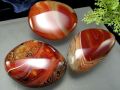 サードオニキス【赤縞瑪瑙】ポリッシュタンブルが入荷しました! 絶妙なニュアンスの縞模様が1点1点異なり、唯一無二の模様をつくり出しています。 ※最後の画像3枚が今回入荷の写真となります。今回は柔らかい印象を受けるタンブルが多めとなっております。 まさに自然がつくりあげた神秘的なアートです。 単色ではなく、様々な色みのグラデーションに深みがあり美しいです。 見る角度や場所によって、色々な表情を見せてくれます。 中には天眼模様もあるので、強力な邪気払いやお守りにも。 丁寧につやつやに磨き上げられ、丸みを帯びた形状は手にしっくり馴染むサイズ感で、つい愛でたくなります。 少量限定入荷ですのでお買い逃しなく!! |
