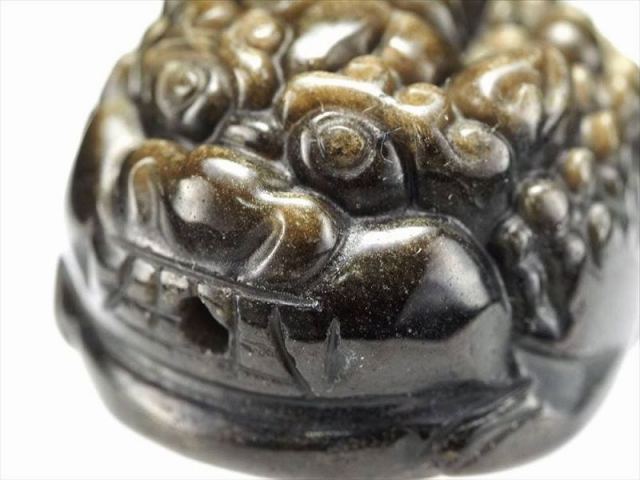 大人気!貔貅【ヒキュウ】の彫刻が施されたタンブルが入荷いたしました!! ゴールデンシャインオブシディアンに、財運・出世の云われのある貔貅【ヒキュウ】を彫り込んだタンブルです ぷっくりと可愛らしく、どこか憎めない表情になっています バチカンや丸カンを付ける穴が開いていますので、ペンダント・ネックレスとしてもお使い頂けますよ 貔貅【ヒキュウ】とは 金銀などの財宝を主食とする中国神話の神獣で、財運アップに絶大な効果を持つとされています。 中国では「一回触ると運勢アップ(運程旺盛)、二回触ると財運アップ(財源滾滾)、三回触ると出世する(平歩青云)」と言われ、特に商売人には大切に扱われているそうです。 |