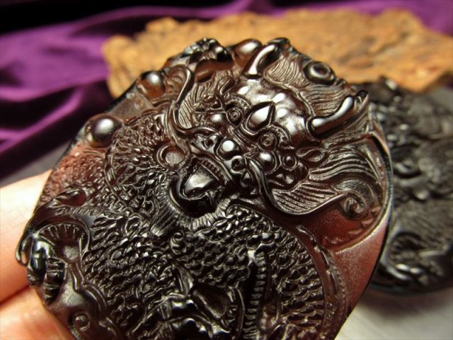 大人気!龍の彫刻が施された特大サイズのカービングプレートが入荷いたしました!! 透明オブシディアンのプレートに、魔除け・厄除けの云われのある龍を彫り込んだ、迫力のあるプレートです まるで飛び出すかのような極上彫刻が素晴らしい秀作です! バチカンや丸カンを付ける穴が開いていますので、ペンダント・ネックレスとしてもお使い頂けますよ |