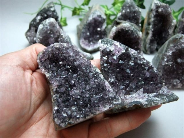 浄化ボトリウムセット 水晶さざれ、自立するアメジストクラスター、斜め口ガラス製ボトル、竹製コースター、フェイクグリーンの5点セットです。!! アメジストクラスターと水晶さざれは、ブラジル産です。 水晶の浄化とアメジストの癒し・安眠パワーが融合した、浄化にもインテリアにも使えるボトリウムセットです。 画像の様にセットして、通常のインテリアセットとして玄関や寝室に飾ったり、アメジストクラスターに乗せる様にして、ブレスレットの浄化にも使えます。 |