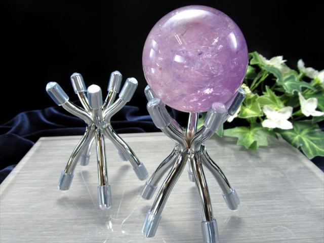 天然石丸玉用のデザインフレーム台座が入荷いたしました!! ※2025年10月再入荷分からはシルバーのみとなっております。ゴールドカラーの入荷は今しばらくお待ちください。 今回入荷からは丸玉に傷をつける心配のない、キャップ付きとなっております! 大サイズ用と小サイズ用で2パターンの使い分けができる超優秀な台座です! 丸玉はインテリアとして、また風水やパワーストーンの分野でも人気ですが台座無しでは安定せず置き場所に困るため、台座は必須です! シンプルなデザイン台座はお店のディスプレイにはもちろん、展示会用やコレクター用として、幅広くご使用いただけます また金属製なので一際目立たせたい、存在感のある丸玉にぴったりです!! 大事にしたい丸玉だからこそデザイン性、高級感のある台座に飾りたくなりますね 丸玉の衣替えのように、台座を変えてみるのもおすすめです! 激安価格での販売です! お買い逃し無く!! おすすめ丸玉サイズ約40-60mm 【※あくまで目安です】 |