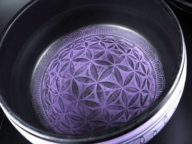 癒しと浄化の音色 空間や天然石アクセサリーなどの浄化に使用される、シンギングボウルが限定入荷致しました! 神聖幾何学フラワーオブライフデザインのシンギングボウルです。 ブラックベースのボウルに、気品溢れるパープルカラーが目を引きます! 音色は深く低く、徐々に波打つような豊かな振動共鳴音です。 シンギングボウルは、音色による精神的な癒しと、音の圧力による肉体的なほぐしのふたつが合わさって「感覚共振」の状態を導くことで、深いリラックスを得ることのできるヒーリング方法です。 ブレスレットなどの天然石アクセサリーの浄化はもちろん、その豊かな音色で空間浄化に優れていると云われています。 集中力を高めたい時などにも利用されています。 シンギングボウルについて シンギングボウルの発祥は3000年前、ブッダ生誕以前に遡ります。 チベットのラマ教の高僧が神に捧げる儀式に使う仏具の一つでした。 シンギングボウルの特徴は「波動」と「浄化する力」、そして「倍音(ばいおん)」と呼ばれる音色です。 なかでも最大の特徴は「波動」の力です。 シンギングボウルを奏でる際の振動は非常にはっきりしたもので、どなたでも感じることができます。 シンギングボウルを体験されると、その「波動」が心と身体に直接働きかけ、固くなっていた心や身体に刺激が与えられ、体の循環が促されると云われています。 現在では欧米でも心と身体を癒すヒーリングツールとして知られています。 フラワーオブライフについて 古代より装飾モチーフとしても用いられてきた神聖幾何学の模様です。 世界各地で発見されている調和とバランスを表す黄金比の図形です。 【付属品】 シンギングボウル マレット(演奏する際に用いられる枹(ばち))※入荷ロットによって、質やデザインが画像と異なる場合がございます。 |