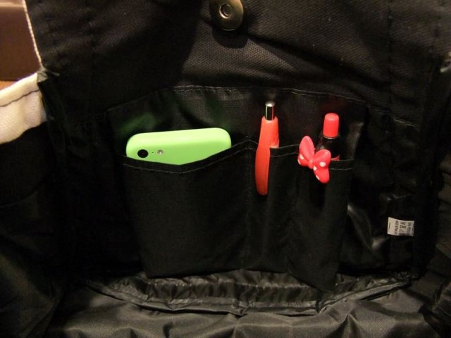 内ポケットはファスナー付きと、仕切り有りの2個。
