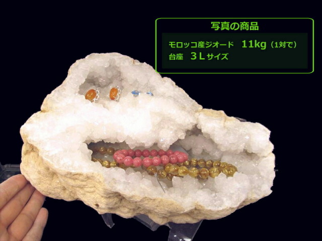 【モロッコ産ジオードを乗せる際のサイズの目安】アクリル台座サイズ: L ジオード500g 1.5kg アクリル台座サイズ: 2L ジオード 2kg 7kg アクリル台座サイズ: 3L ジオード 7kg以上