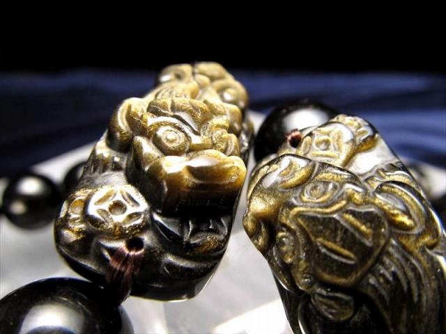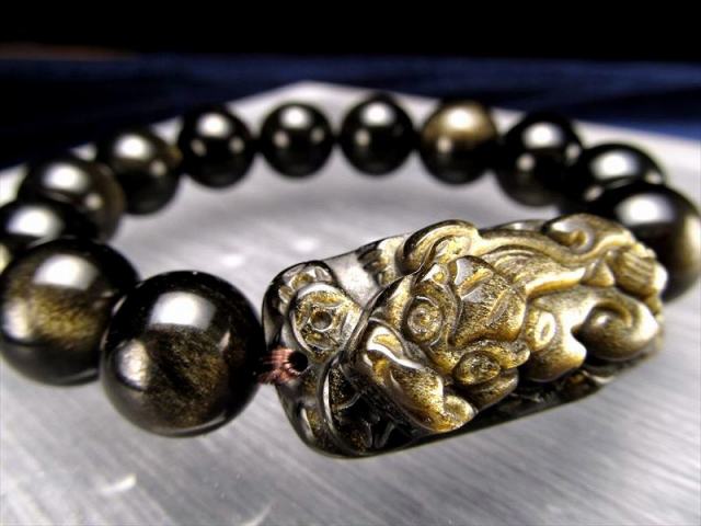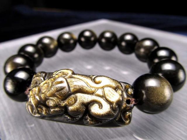 透明感もあるレインボーオブシディアンにヒキュウを掘り込んだ珍しいブレスレットです♪ 財運のお守り・縁起物として人気の高いヒキュウデザインです。 神秘的なレインボーシラーが美しく、大変おススメの逸品です!!