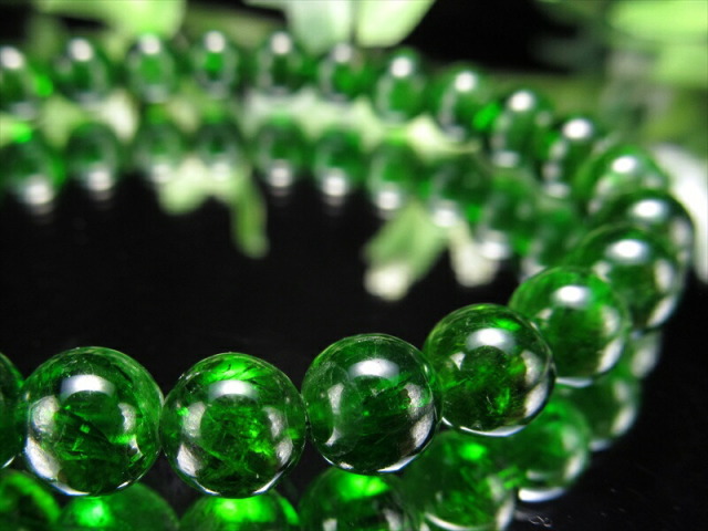 ダイオプサイトの中で、クロムを発色要因とする深い緑色のダイオプサイトをクロムダイオプサイトと言います。 大きい塊の結晶があまり採れない鉱物で、大珠ほど希少価値が高く珍しいパワーストーンです