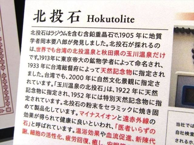 北投石は台湾の北投温泉と日本の秋田県玉川温泉の2か所でしか産出されない特別な天然鉱石です。