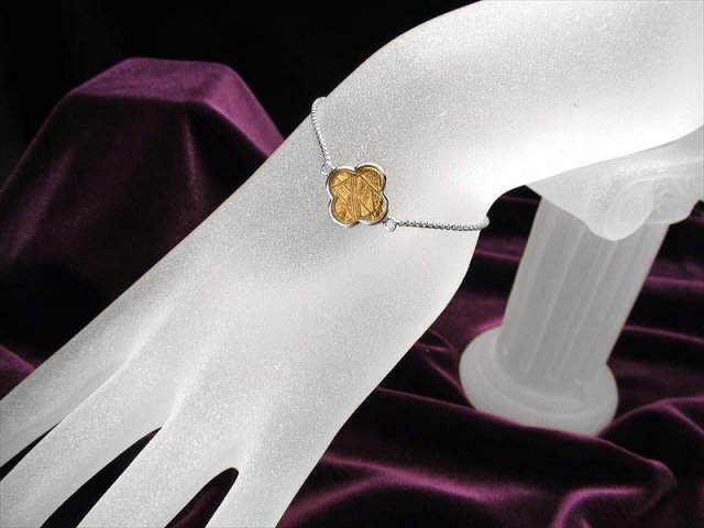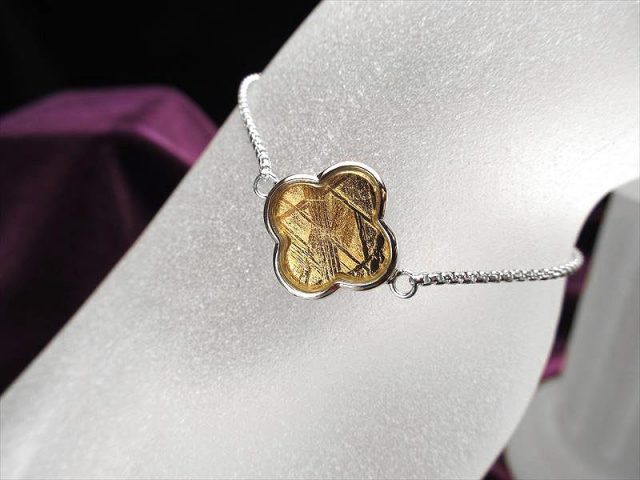 • 激安宣言 フラワーモチーフ ギベオンブレスレット ゴールドカラー モチーフ最大幅約14mm メテオライト 隕石 アジャスターチェーンタイプ