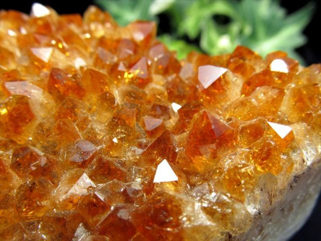 こちらのクラスターはシトリンよりも深い色、まるでブランデーのような色です。 きらきらと光の反射する結晶は透明感があり、光をかざして観賞すると心が癒されます