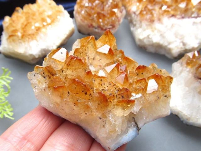 こちらのクラスターはシトリンよりも深い色、スモーキーよりも明るいまるでブランデーのような色です。 きらきらと光の反射する結晶は透明感があり、光をかざして観賞すると心が癒されます