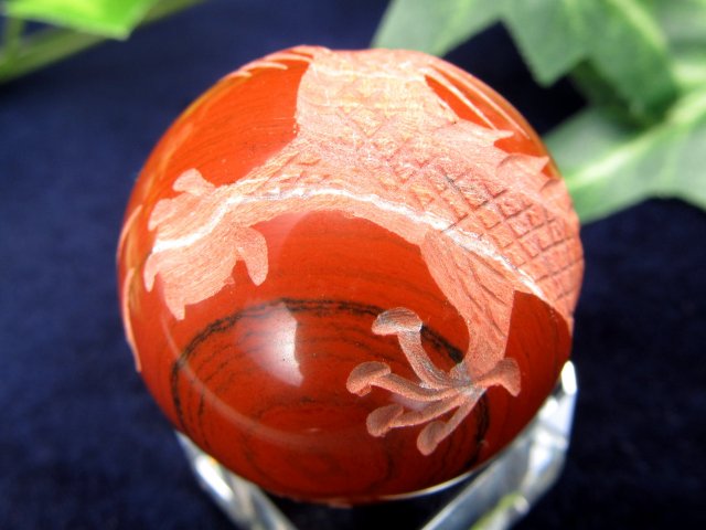 五本爪龍彫り レッドジャスパー 丸玉