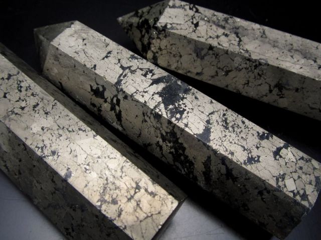 ギラギラと煌めくパイライトから削り出された六角ポイントです!