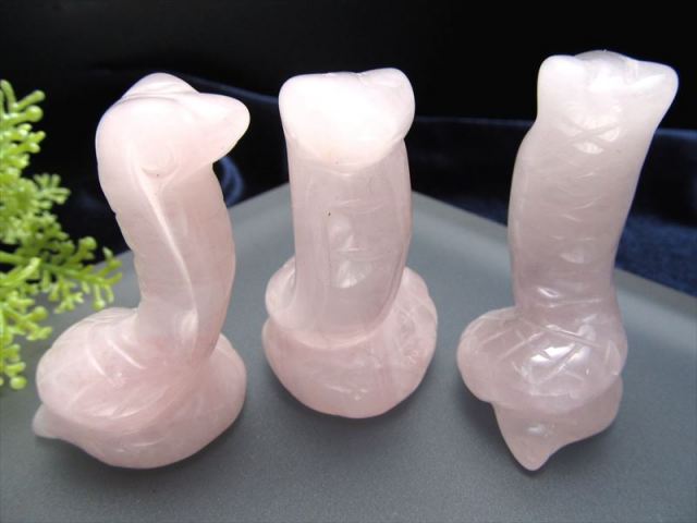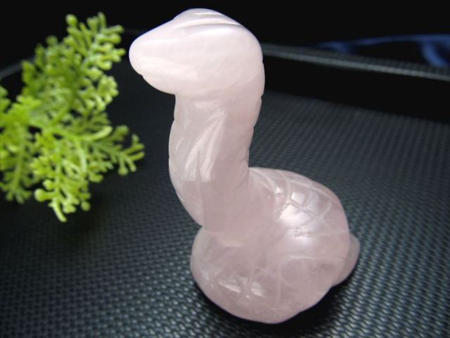 ローズクォーツ 蛇 彫刻置物