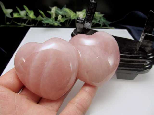 ディープローズクォーツ ダブルハート型 置物