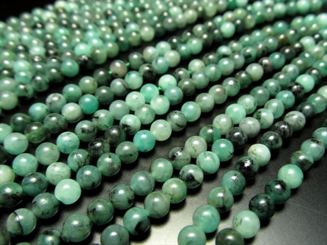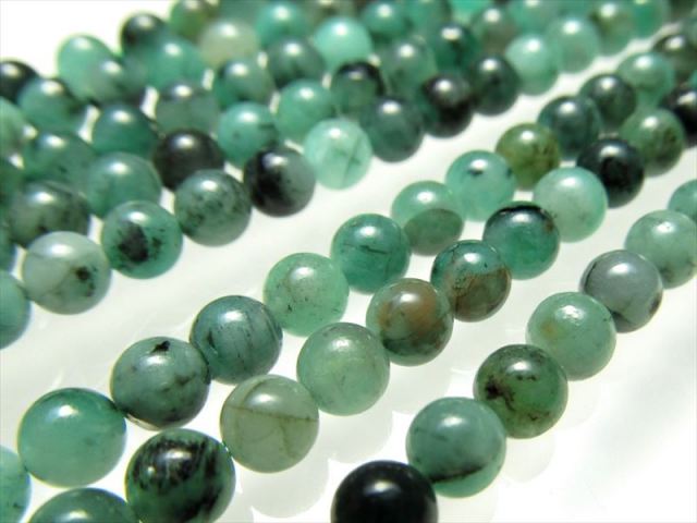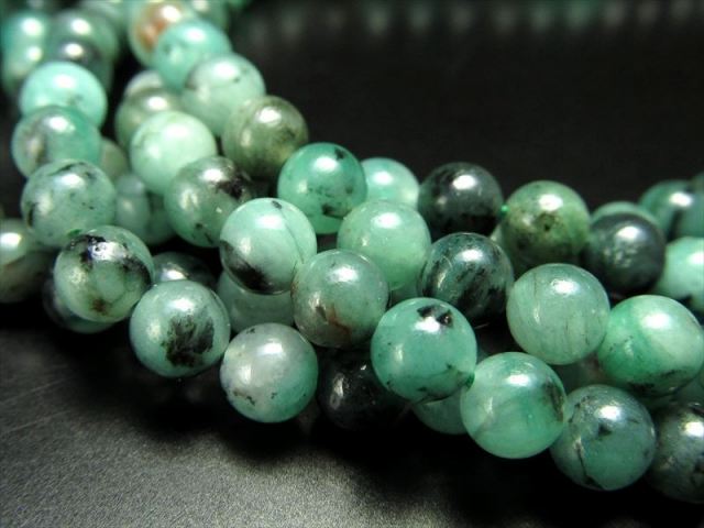 優しい緑色で古来より世界四大宝石に数えられ、『叡智』と『愛』の象徴として大切にされてきたエメラルド。 アクアマリン等と同じベリルの中でも、産出量が少なく希少な天然石です。 こちらは濃淡があり、黒い部分も含まれています。 男性にも女性にも人気のあるパワーストーンです!