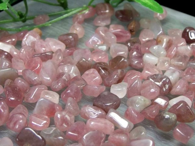 一般的に流通しているローズクォーツは淡いパステルピンクですが、こちらは大変オススメの希少カラーです! 若干紫がかったピンクの、目を引く可愛らしいさざれです。