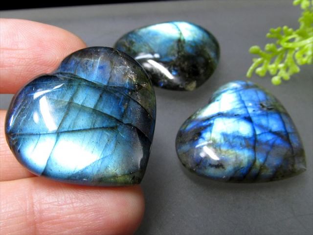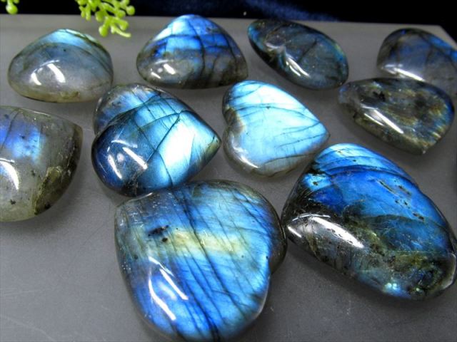 【ラブラドライト タンブル】 ぷっくり厚みのあるハート型タンブルです! 1つ1つ違う色味のシラーが出ており、一つのタンブルでも複数の色が出る魅力的な子もいます!