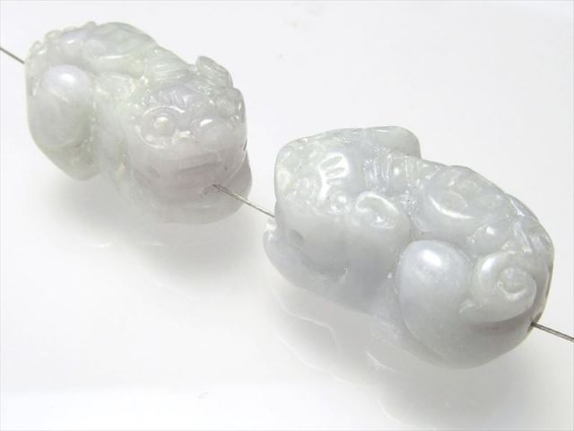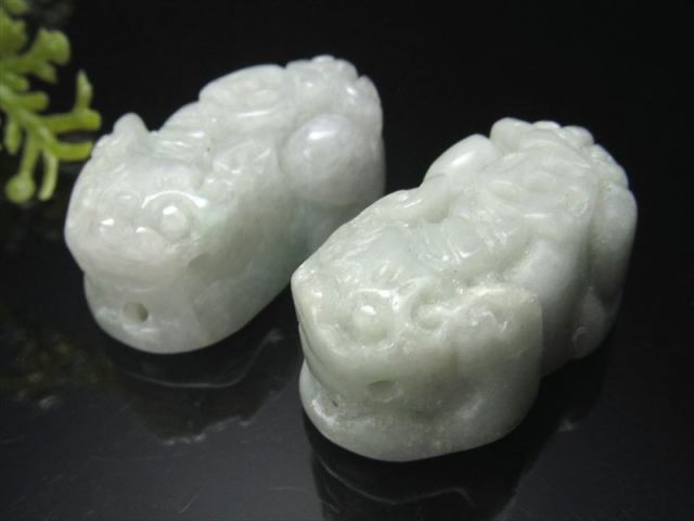 翡翠を、貔貅【ヒキュウ】と呼ばれる中国神話の神獣の形に彫り込んでいます。