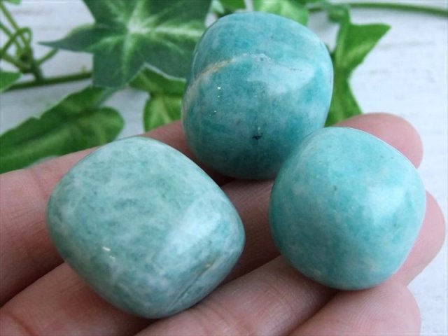 水流を想起させる幻想的なブルーグリーンのアマゾナイトの、小ぶりのタンブルが入荷しました! ※最後の画像2枚、白い背景にあります量が約100gです。参考にして下さい。